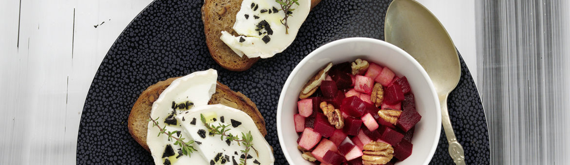 Ziegenkaese auf Nussbrot mit Rote Bete Tartar